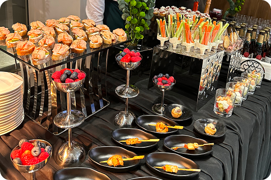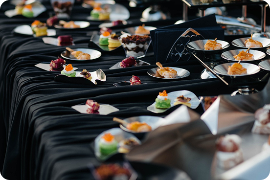 У нас есть разнообразные готовые меню на любой вкус и бюджет. Мы сотрудничаем только с проверенными поставщиками и готовим все непосредственно перед вашим событием. Свежесть, вкус и безопасность — наши главные приоритеты. Мы позаботимся о вкусном и разнообразном меню и безупречном обслуживании, чтобы ваше мероприятие проходило на высоком уровне.