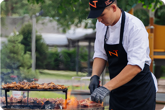 Мы работаем с заказами от 10 человек, чтобы каждый получил максимум внимания, и готовы обслужить до 1000+ гостей на крупных мероприятиях. Мы любим создавать атмосферу! Тематические блюда, декор в стиле вашего праздника, сделают событие уникальным.