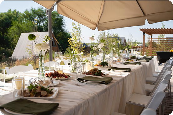 В большинстве наших пакетов уже включены стильная посуда, профессиональное обслуживание и базовый декор столов. Хотите чего-то особенного? Мы с радостью предложим дополнительные варианты эксклюзивных элементов, чтобы сделать ваш день незабываемым.