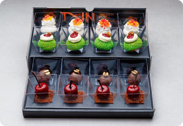 Вы можете заказать кейтеринг с полным обслуживанием: наша команда приедет на вашу площадку, организует сервировку и подачу блюд, а также позаботится о каждом госте. Опытные официанты, повара и координаторы сделают ваше мероприятие безупречным, незаметно решая все вопросы.
