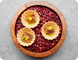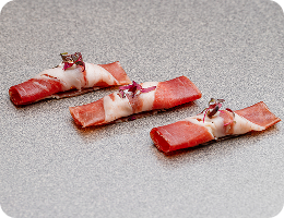 Рулетик вяленой индейки с кенийской фасолью и кремом из молодойи кукурузы