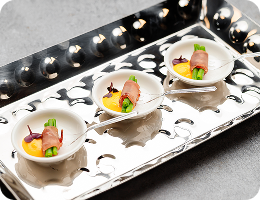 Лангустин на шпажке с мятным соусом и ананасом