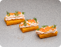 Хэшбраун с риетом из лосося и красной икрой