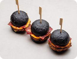Blak мини бургер на гриле с котлетой из мраморной телятиной с чернилами каракатицы