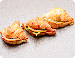 Мини-круассан с индейкой, листьми салата, свежим огурцом и крем-чизом